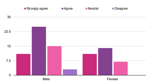 The number of male respondents is 54, and the number of female respondents is 32, so the data above reflects the frequency and proportion of each gender among the respondents. Figure 1