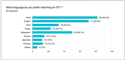 The preferred language is highlighted in graph above shows the percentage of respondents. The most respondents are in Tamil, followed by English, Hindi, Telugu, Malayalam, Korean, Japanese, Chinese, and other languages. Figure 9