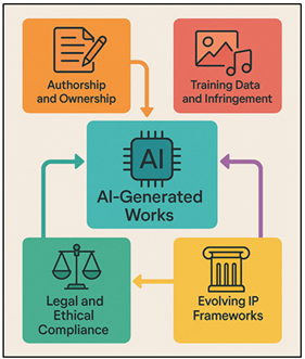 Figure 2 Framework for Managing Copyright and Intellectual Property in AI Art A lot of times, these files contain protected materials such as photos, designs and artworks that have been stolen from the internet without the creators permission. Figure 2 shows the process of copyright management, attribution of copyright ownership and ethical protection. Because of this, A.I. generated products could potentially copyright content without the intent of doing so, and this could lead managers and venues to potentially get into legal trouble. It's very hard to figure out where AI artworks come from when algorithms work like "black boxes" which makes it hard to find inspirations or sources. In order to handle these intellectual property issues in a managerial role, you must be aware of the law and mindful of social issues Shambharkar et al. (2025). They have to check usage rights, talk to lawyers and make sure that works on display abide by copyright rights and fair use rules. Also, institutions are beginning to advocate for new intellectual property regulations that recognise the fact that people and AI systems can collaborate to produce works. 3) Technical