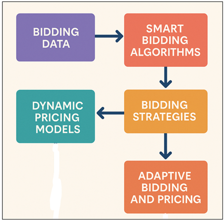 Models Transformer-based models are the further development of NLP-driven bidder communication, and they provide intelligent and contextual interactions. These AI systems use large amounts of textual data to extract meaning, context, sentiment, and intent and engage in conversations with users in a dynamic and natural way with the help of architecture such as BERT or GPT. Contrary to chatbots operating by a set of rules, transformers are capable of producing human responses, making sense of more subtle queries, and making tailored recommendations depending on user behavior and other factors. Transformer models used in online art auctions to guide entendeurs, provide explanations on the provenance of artwork, or propose suitable artworks based on personal interests. This flexibility increases user experience, which creates trust and engagement and demonstrates the intelligence and sophistication of the current AI-based auction platforms. 4. AI in Operational Management of Auctions 4.1. Automating registration and verification processes Automation by use of AI has greatly improved the process of registration and verifying of online art auctions and these are safe, efficient and convenient to users. Conventionally, participant registration and verification of their credentials used to be done manually through documentation, checking of identity, and compliance checks and verification which would normally take time and turn out to be erroneous. These tasks are now simplified with the implementation of intelligent identity verification systems that leverage facial recognition and document scanning algorithms and fraud detection algorithms with the inclusion of AI. Machine learning models take into account information posted by the user (ID documents, payment details, and previous participation) and compare it with authentic data to confirm authenticity in real-time. Optical Character Recognition (OCR) software will pull out and authenticate written information on legal documents and computer vision will cross reference biometric information to eliminate duplicate accounts and impersonation. AI systems also track risk profiles using behavioral analytics, raising suspicion on the activities prior to the execution of transactions. 4.2. Intelligent matchmaking between buyers and artworks The matchmaking systems based on AI are transforming the world of art auctioning since they pair buyers with pieces of art that perfectly match their preferences, finances, and collecting objectives. These systems process huge volumes of data that includes past bidding patterns, buying patterns, visual interests and market trends to give personal recommendations. Through machine learning methods, including collaborative filtering, clustering and content-based filtering, AI can detect valuable user behavioral patterns and art attributes. As an illustration, one of the uses of an AI engine can be to recommend abstract expressionist works to the collector who often bids high on modern art, or to suggest up-and-coming artists to the buyer due to their resemblance to the previously acquired pieces. This is also complimented by computer vision, which processes visual features such as color palettes, compositions, and textures against the aesthetic profile of a user to pair off artworks with them. This smart matching will provide a unique and interactive experience that would create future participation and customer loyalty. Operationally, AI-based matchmaking is also useful to galleries and auctioneers, increasing the awareness of underrepresented artists and exposure to the right audiences. 4.3. Smart bidding systems and dynamic pricing models The application of AI in online art auctions can be seen in smart bidding systems and dynamic pricing models as one of the most significant ones. Such technologies help to make decisions based on data and make them automatically during the bidding and price changes to make it more fair, engaging, and profitable. Smart bidding applies the predictive analytics and reinforcement learning to understand the present bidding patterns and competitor actions as well as the level of user activity. Using such insights, the AI agents will be able to put optimized bids inside a given budget to ensure the highest probability of win without being emotional. Dynamic pricing machine learning-based models refer to how artwork prices shift based on the demand in the market, the activity of the bid, and the time considerations. In art auctions, process flow of intelligent bidding and pricing mechanisms are presented in Figure 2. As an example, when several bidders are keen on a work, AI algorithms can increase the bid very slowly in real time so that it holds competitive pressure. On the other hand, with less-needed items, increments can be minimized to boost participation. Figure 2