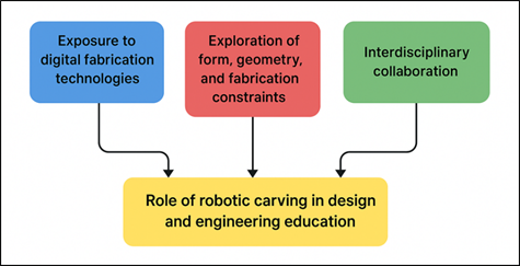 3. Educational and Pedagogical Context 3.1. Role of robotic carving in design and engineering education Robotic carving has emerged as a powerful instrument in design and engineering education with the potential effect of giving students firsthand experience of high-digital fabrication technologies which are presently being employed in professional practice. Robotic carving bridges the gap between theory and practice by allowing learners to perceive the mutually reinforcing nature of the relationship between computational modeling, material performance and mechanical performance in the modern design studio and engineering laboratory. Figure 2