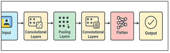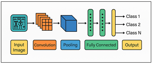 1. INTRODUCTION Tribal art is one of the most culturally diverse and ancient human forms of expression and is a representation of beliefs, rituals, and identity of the indigenous peoples in the world. Tribal artworks have a complex shape with their geometric designs, symbolic motifs, repetitions of visual material, and even specific color palettes, which are critical sources of cultural information. These visual culture frequently hold on to narratives and cosmologies and shared memory that traversed across generations. Nevertheless, even though of value, tribal arts have not been given much attention in the field of computational analysis. Absence of standard datasets, the stylistic differences of the tribes, and the sophistication of the hand-made patterns are major obstacles to the automated recognition systems. With the ongoing growth of digital archiving and cultural preservation initiatives, it has become more and more apparent that it requires powerful computational frameworks that can be used to analyze and categorize tribal art. Conventional approaches to computer vision, including edge detection, texture descriptions, and manual feature handling, have been reported to be of limited success in the process of imitating the visual nuances that are inherent in tribal designs. The approaches usually have a problem with inconsistency in artistic styles, disparities in imaging conditions, and abstract concept of most tribal motifs. This has led to an increased interest in the use of modern deep learning methods which are able to learn hierarchical representations on raw image data automatically without the need to use manually designed features. Consuming the top spot in image classification and pattern recognition jobs, CNNs have become the current leading architecture of these operations. The CNN layers that would analyze and interpret tribal art are described in Figure 1. They are especially useful in analysis of artistic patterns because of their capability to extract multi-level features such as simple strokes and edges, complex shapes and textures. Figure 1
