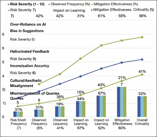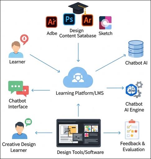 Mitigation Effectiveness in AI-Assisted Creative Workflows 7. Conclusion This paper has shown, through a creative design learning context, that chatbot implementation has a meaningful contribution to ideation fluency, visual reasoning, and engagement by acting as an adaptive mentors, a collaborator, and an evaluator. According to the results, creativity scores, conceptual clarity, layout balance, and color harmony significantly improved as a result of multimodal feedback on the chatbot, their generative guessing opportunity, and tailored advice. Learners were also able to enhance their reflective thinking, autonomy, and efficient iteration processes through the ongoing and contextual dialogue and real-time critique. The case studies also established that chatbot-assisted processes can be successfully applied in various design projects (branding and poster designing, UI/UX and conceptual illustration) indicating the system as versatile and pedagogically useful. This impact was confirmed by the methodology in the categories of students, educators and professionals by means of quantitative measurement, qualitative assessment and analysis of user experiences. Nevertheless, other issues found in the research are risks of over-reliance, inconsistent accuracy, bias in generative results and sometimes hallucinated feedback. The responsibility of ethics in terms of authorship, data privacy, and cultural sensitivity shows that responsibility in execution frameworks is necessary. Regardless of these shortcomings, the results confirm that chatbots have the potential to complement considerably the usual and the blended studio learning when implemented with transparency, human control, and effective safety measures. The research places chatbots in the central role of transformational aids which assist in co-creation, multimodal exploration, and reflective practice of design. Closing the feedback accessibility and encouraging more intensive thinking opportunities, chatbot-enhanced systems represent a valuable direction in the more inclusive, flexible, and forward-thinking creative design education.