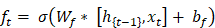 where σ is the sigmoid activation function, W_f is the weight matrix, and b_f is the bias term.