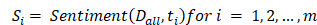Calculate the difference in sentiment between two time periods t_0 and t_m: