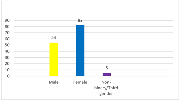 Distribution of Respondents Demographic analysis showed that There is a noticeable female domination in the gender balance. The number of female respondents is 82 which forms 58.15 percent of the sample. This is an indication of a high representation of women in the practices and training of Bharatanatyam. Male respondents are 54, comprising 38.29 percent of the sample which means that male representation is increasing, although at a low rate than the female. The five respondents or 3.5 percent of the respondents are non-binary or third gender. Even being small in number, it is significant to include them in a study that should be in gender inclusiveness. In general, the distribution shows that although the field is still controlled by women, it is also associated with involvement of various genders and, therefore, is appropriate to study the attitudes toward gender discrimination and inclusivity. Figure 2