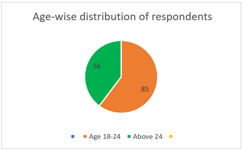 Distribution of Respondents The age data shows that there is high concentration of young adults in the sample. The number of respondents in the age group of 18 to 24 years is 85 or 60.28 percent, which gives early adulthood as the most active period of engagement in the Bharatanatyam practice. It is actually a trend that is observed at a time when people are usually engaged in the formal training, college and acquiring skills. The number of respondents aged above 24 years is 56, which constitutes 39.72 percent of respondents. This segment is older (or more established) and may contain retired practitioners that moved to teaching, professional performance or advanced training. The younger participants predominance indicates that this study is mostly capturing the view of upcoming practitioners although there is still the contribution of mature dancers. Such a balance leads to knowledge and attitude analysis at various levels of dance participation. Figure 3
