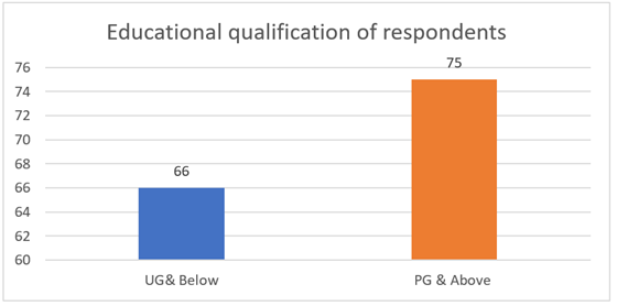 Qualification of Respondents The education profile indicates the slightly better representation of postgraduate or higher qualification respondents. There are 75 respondents or 53.19 percent who belong to this group, which means that over fifty percent of the sample is exposed to academic advancement. This implies that there is an increased likelihood of such a group having greater amounts of analytical capacity, awareness, and interest in social and cultural concerns and gender inclusivity. The number of respondents who have undergraduate or below qualification is 66, and it constitutes 46.81 percent. This group consists of those students who are in their initial academic stages as well as those with limited formal education. The fact that the two categories are almost equal means that there is diversity in the background of education and this helps in investigating whether there are differences in attitudes and knowledge between academic levels. The data in general indicate a slightly well-educated group of participants. Figure 4