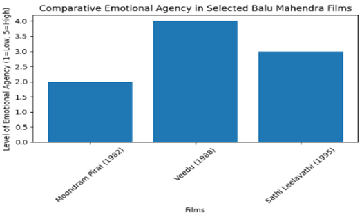 4. Analysis and Discussion This section applies theoretical frameworks—naturalism, the male gaze, emotional agency, and a Gen Z feminist lens—to selected films of Balu Mahendra. The analysis explores how women's emotional lives are portrayed and whether those emotions translate into meaningful narrative power. 4.1. Emotional inner world in Moondram Pirai Moondram Pirai is one of the most famous works of Mahendra. The film focuses on a young woman who loses her memory and falls into a child-like mental state. A school teacher rescues him and takes care of him, forming a deep emotional bond. The film is visually soft, intimate and slow-paced, which suits Mahendra's natural aesthetic. Superficially, the female protagonist is treated with tenderness and sympathy. The camera captures her vulnerability through close-ups, soft lighting and quiet emotional moments. His innocence appears to be at the center of the film's emotional impact. However, when examined through the lens of the male gaze (Mulvey, 1975), this portrayal becomes more complex. While he is framed sympathetically, the narrative ultimately focuses on the emotional transformation of the male protagonist. Her presence serves as a catalyst for his pain, longing, and tragic loss. His emotional interiority is visible, but his structural agency is limited. She doesn't move the narrative forward through conscious decision-making; Instead, her vulnerability creates emotional depth for the male character. From a Gen Z feminist perspective, this becomes problematic. Contemporary audiences, shaped by consent discourses and critiques of romantic dependency, may question the aestheticization of female fragility. Innocence becomes spectacle – beautiful, poignant and tragic – but still situated within male-centric liberation. Thus, Moondram Pirai reflects the tension between empathy and control. The film offers emotional realism, yet the female character's agency remains mediated by the desires of the male narrative.