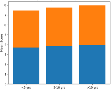 It can be seen that the upward trend in the graph is quite evident and thus perception of leadership increases with experience.