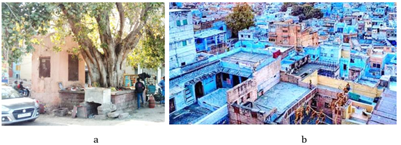 Jodhpur's ancient city stretches around the Meharangarh fort as visible in Figure 1. The tough living conditions in the zone are exacerbated by the hot and dry climate, which results in sparse vegetation limited to xerophytes such as prickly Kikar (Acacia nilotica) and Khejri (Prosopis cineraria) in the vicinity. Table 1