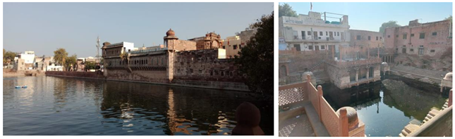 2.6. BUILT WATER BODIES Jodhpur boasts significant groundwater bodies in the form of numerous wells, Baoris, and Jhalaras, as illustrated in Table 2. These structures were constructed with the primary purpose of ensuring a steady and accessible water supply to the surrounding areas. They do not have their own catchments and are not connected to any river; instead, each one collects underground seepage from an upstream Talab or lake. These structures vary greatly in shape, size, depth, design, layout, and location. To optimize resources, construction efforts focused on minimizing space usage. Notably, the presence of Peepal trees, or Ficus religiosa, at key intersections and areas provided shaded spots for people to cool off during hot summer afternoons in places like Ranisar and Padmasar Gopinath (2000), Chatterji & Vangani (1988). Over the past two centuries, Jodhpur has established a total of five primary artificial reservoirs for water bodies. The most recent addition, Paota, was constructed in 1887, while the first, Fatehsagar, dates back to 1780. Among these reservoirs, three are located within the city, while two are situated outside. Fatehsagar, Gulabsagar, and Baiji-ka-talab are the larger water reservoirs located at the first three locations. Both Paota and Mansagar, are comparatively substantial. The administration closely monitored their maintenance, sanitation, and regular upkeep. Table 2