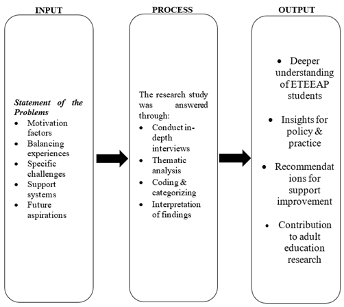 lived experiences of ETEEAP students. The Input portion encompassed the