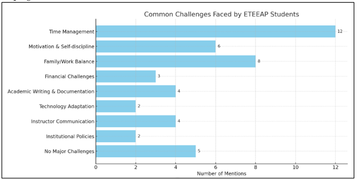 1. INTRODUCTION Among the most important programs in the Philippines, the Expanded Tertiary Education Equivalency and Accreditation Program (ETEEAP) allows non-traditional students to get college degrees by having their previous coursework and work experience recognized (Commission on Higher Education CHED (2019). Recognizing that professional and experience learning play an important role in adult learners' pursuit of academic credentials, this program caters to their varied needs CHED (2020). Personal development, professional advancement, and the requirement for official recognition of skills gained outside of conventional classroom settings are some of the many factors that influence people's decisions to seek education through ETEEAP Jones and Smith (2021). The importance of ETEEAP and similar alternative pathways in fostering both workforce preparedness and lifelong learning is growing in tandem with the transformation of higher education. In order to keep up with the ever-changing labor market, advance in their current positions, or change careers, many adults decide to return to school Reyes and Dizon (2023). Obtaining equivalency certification, though, isn't a picnic. Smith (2023) notes that many ETEEAP students have to juggle job, family, and school responsibilities with little help from the institution. In light of these facts, it is clear that schools need to do more to remove the personal and systemic obstacles that students face. In addition, returning to school after a period in the industry can be a challenging transition for ETEEAP students, who often struggle with issues of self-confidence and anxiety about their academic performance. This being said, their experiences frequently demonstrate perseverance, intrinsic drive, and a firm resolve to grow professionally and personally Brown and Garcia, (2024). This study aims to add to the expanding conversation around non-traditional education and how institutions can better assist adult learners in reaching their maximum potential by shedding light on these experiences. For ETEEAP to be more adaptable and long-lasting, it is essential to learn about the students' goals, struggles, and reasons for participating. Policies that encourage inclusive practices, flexible learning options, and more extensive guidance services can be informed by a greater understanding of their lived experiences Del Rosario and Cruz (2025). This research aims to give ETEEAP students a platform to share their stories and demonstrate how their experiences impact not just their personal growth but also the development of human capital at the national level and the larger goal of creating a more inclusive and flexible higher education system in the Philippines. 1.1. Statement of the Problem This research study sought to investigate the motivations, challenges, and future aspirations that ETEEAP students had experienced in the course of pursuing their academic and professional goals. Specifically, it sought to answer the following questions: 1) What factors motivate students to enroll in the Expanded Tertiary Education Equivalency and Accreditation Program (ETEEAP)? 2) How do ETEEAP students describe their experiences balancing academic requirements with personal and professional responsibilities? 3) What specific challenges do ETEEAP students encounter throughout their journey in the program? 4) How do ETEEAP students perceive the support systems and resources provided by their institutions? 5) What are the future aspirations and career goals of students who complete the ETEEAP program, and how do they plan to achieve them? 1.2. Scope and Delimitations Students