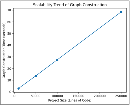Construction The Figure 3 shows that there is nearly a linear increase in construction time with the increase in the project size. This validates the effectiveness of the fusion algorithm and hash based alignment strategy. Regardless of the growing density of the graph, the degradation of performance is controlled, which suggests that the ability of the experimental approach to integrate multi-view program representations into a single Hybrid Program Graph will lead to a significant improvement in the detection performance, scalability, and explainability. Opti-Blend is always better than standalone methods in F1-score, less false positives, and better traces completeness. Scalability analysis establishes the consistent growth in process time in the region of linearity, and it proves effectiveness of the graph fusion strategy. These results show that the Opti-Blend methodology offers a solid and viable approach to integrated explainable and scalable code analysis in contemporary software systems. 6. Conclusion In this paper, Opti-Blend, a Visual Graph-Based Modeling Framework of Integrated Code Analysis aimed at overcoming the problem of fragmentation, limited explainability, and scalability of the modern software analysis systems, was introduced. In contrast to conventional methods that work independently in the framework of the static, dynamic, and dependency level analysis, Opti-Blend proposes a Hybrid Program Graph (HPG) that combines various program representations (AST, CFG, DFG, PDG, Call Graph and Dependency Graph) into a single semantically consistent graph. The suggested graph fusion mechanism allows systematic alignment of nodes, integration of edges of types, and removal of redundancy and maintaining multi-layer relationships. This integrated display enables cross-layer traversal, which further enhances correct vulnerability detection, complete code smell detection and powerful dependency risk propagation analysis. Opti-Blend is much more effective in reasoning completeness than analysis pipelines, which analyze one or two graph dimensions only. The experimental findings prove that the suggested framework performs better in major evaluation metrics. Vulnerability detection F1-score was better than both the static-only and only the single graph methods, and false positive was decreased because of the contextual multi-edge traversal. Experiments in scalability prove that the construction complexity of graphs is almost linear to the node and edge numbers, which confirms the effectiveness of the fusion algorithm. Moreover, the explainability assessment based on Path Completeness Score shows that the traceability and developer interpretability has significantly improved. One of the outstanding contributions of Opti-Blend is the ability to do visual reasoning. The framework allows reducing the gap between the algorithmic analysis and human interpretation by converting the problem detection into the visual narratives through the path. Propagation chains on control, data and dependency edges can be inspected by the developers, greatly decreasing the amount of progress in debugging and increasing the confidence in automated results. This visual first system makes Opti-Blend stand out among the conventional systems of text reporting. Although these contributions have been made, there are still some limitations. The construction of graphs in very large size enterprise repositories can need the benefits of distributed storage and parallel processing. Also, the accuracy of the alignment is determined by the accuracy of identity resolution. Future efforts will be directed towards working with Graph Neural Networks (GNNs) to improve defect prediction modeling, introduce runtime telemetry as a tool to support hybrid blending (between static and dynamic), and the efficient storage of graphs at scale in industries.