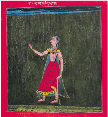 Especially in Abhisarika Nayika depictions, rain becomes a backdrop of