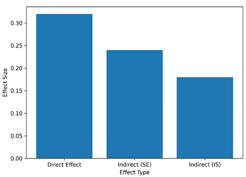 Figure 4 Meditative Effect The mediation analysis establishes the partial mediation in which training affects the teaching effectiveness indirectly via self-efficacy and institutional support. 5.6. Discussion of Findings The results indicate that faculty design-thinking training has a strong positive effect on teaching both indirectly and directly. The strongest predictor of the mediators was design-thinking self-efficacy, which demonstrates that faculty confidence is important to use innovative teaching methods. A positive significant effect was also observed on the institutional support which was significant emphasizing the role of organizational infrastructure, policies and encouragement in supporting pedagogical innovation. Nonetheless, its influence was a little bit smaller than that of self-efficacy indicating that personal ability can overpower other environmental conditions in some situations. The mediation analysis helps to confirm the fact that training is not a sufficient condition and testing should be improved by making the faculty confident and having institutional support. These findings are consistent with the Social Cognitive Theory, which stresses the interaction between personal beliefs and environment to develop behavior. 6. Conclusion and Future Work This paper addressed the effect of the faculty design-thinking training on teaching outcome in the Chennai based engineering colleges with specific emphasis on the mediating variables of design-thinking self-efficacy and institutional support. The study adopted a quantitative methodology and Structural Equation Modeling (SEM) to empirically prove the hypothesized conceptual framework and verify six hypotheses. The results suggest that training on design-thinking by faculty contributes to teaching effectiveness, directly and indirectly, in a great positive way. Design-thinking self-efficacy turned out to be the most significant mediating variable, which implies the key role of faculty confidence when implementing innovative pedagogical practices. When faculty members feel that they are effective in design-thinking practices, they will tend to use interactive and student-centered pedagogies and will enhance learning outcomes in general. It was also observed that institutional support had a significant positive role in teaching efficiency, which supports the significance of organizational aspects like the encouraging role of administration, the availability of resources, and the possibility of professional growth. Nonetheless, it had a comparatively lesser impact than self-efficacy and it is arguable therefore that institutional support is an important but secondary factor in influencing teaching innovation. The mediation analysis also showed that design-thinking self-efficacy along with institutional support mediate the association between faculty training and teaching effectiveness in a partial manner. It means that training programs cannot be efficient on their own, unless they increase the confidence of the faculty and are facilitated by the favorable institutional settings. The findings can add to the literature that addresses the integrated perspective, which connects personal and organizational factors in the scope of engineering education. In a practical perspective, the research provides valuable consequences to policy makers and learning institutions. Colleges of engineering need to invest in design-thinking programs that are well structured and focus on practical learning and application. Besides, such training programs need to create an enabling ecosystem through the provision of required infrastructure, incentives, and long-term professional development opportunities to ensure that maximum benefits are achieved through such programs. The research has some limitations despite its contribution. The study is limited to the engineering colleges in Chennai and this could restrict the extrapolation of the research to other areas or fields. A cross-sectional design also limits the causal ability to be established through time. Moreover, the research is based on self-reported findings, and it can be affected by bias in responses. To consider these limitations, future research could be undertaken in the form of longitudinal studies to analyze the changes in the teaching effectiveness during the time and also increasing the number of regions and academic disciplines to be studied. Other mediating and moderating variables that can be examined by researchers include organizational culture, leadership support, technological readiness and faculty motivation. The effect of the context on the research could be better seen through comparative studies of institutions which have different degrees of institutional support. To sum up, this paper has highlighted the significance of teacher training, personal self-efficacy, and institutional support in teaching effectiveness in engineering education. With the constant change in the requirements of the industries, the design thinking pedagogy and the establishment of conducive environments in which the students will learn will be the key in producing skilled and innovative graduates.