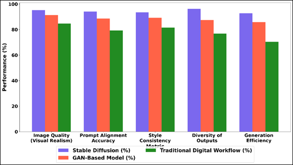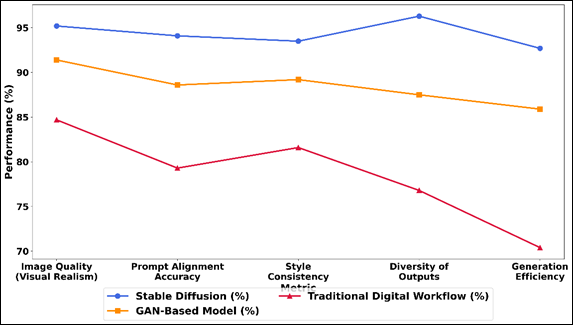 Figure 3 Comparative Analysis of Stable Diffusion, GAN-Based, and Traditional Digital Workflow Performance Across Creative Metrics