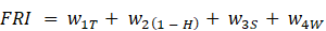 Modeling and Index Formulation A multi parameter Fire Risk Index (FRI) which is a combination of environmental factors, namely, temperature (T), humidity (H), smoke level (S), and wind speed (W) is used to compute the fire risk. The parameters have a weight, which is determined by its contribution to the fire risk. The FRI is estimated in terms of weighted aggregation:
