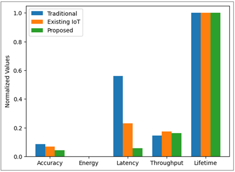 As it is shown in the Table 2, the suggested framework is more efficient, scalable, and can be visualized as compared to the traditional and existing IoT-based systems. 4. Results and Analysis There is an evaluation of the system based on simulated and real-time environmental datasets to determine its efficiency in accuracy of prediction, energy efficiency, latency, and network reliability. It is also compared to the existing strategies to prove the excellence of the proposed framework. Table 3