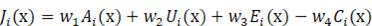 This implies that the system aims at maximizing aesthetics, functionality, sustainability and user satisfaction and minimizing cost. To be applied in practice the multi-objective formulation can be transformed into weighted single-objective: