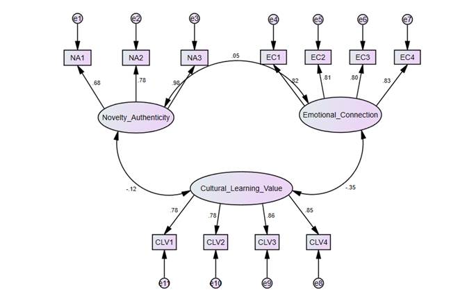 invested” (0.826), “The cultural experience engaged my senses and added value”