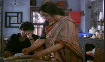 In this scene, the landlady, grappling with the solitude that has defined her existence, agrees to a film shooting in her mansion. As she takes on the role of a gracious host, serving lunch to the director, a subtle shift occurs in the dynamics of her loneliness. In this exchange, she seizes the opportunity to confide in him, sharing the burdens and complexities of her solitary life. For the first time in a long while, she finds solace in having someone to connect with, someone to lean on, and perhaps, someone to love. This moment becomes a cathartic release, symbolizing her yearning for companionship and the potential for a newfound emotional anchor in her life. 5) Genre and Style: In Bariwali, Rituparno Ghosh explores the ordinary life of Banalata (Kiron Kher), the last living descendant of an aristocratic family living in a dull suburban home. The movie shows her existence as an apparently lazy one, one that consists of watching television, doing mundane housework, and interacting with her vivacious maid Malati and her devoted but elderly servant Prasanna. When a movie production team shows interest in renting the estate for a historical play, the story takes an exciting turn. Normally restricted to her solitary routine, Banalata is enthralled by the entrance of the film team, particularly the charming director Dipankar and the stunning actress Sudeshna. Even though Banalata knows about Dipankar's previous relationship with Sudeshna and his marital status, she is mesmerized by this newly earthly bond. The movie tells the story of her brief interaction with the cast and crew, during which she even has a little role, before being abandoned when they leave. Based on Ghosh's adaptation of a short tale, this moving drama addresses themes of treachery, loneliness, and unmet dreams, offering a powerful example of the drama genre. Scene 5