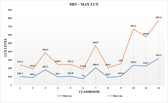 for student desks usually falls within 300–500 lux; yet, numerous classrooms