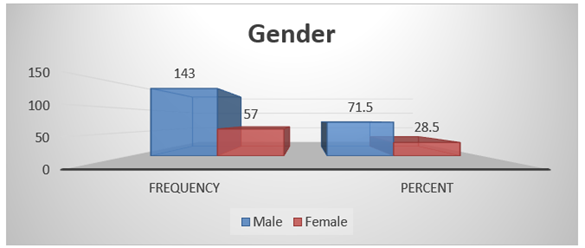 frequency is 41 and percentage is 20.5%. In 1 -3 years, frequency is 96 and