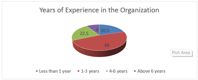 Experience of respondents is presented in table above. In Less than 1 year,