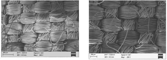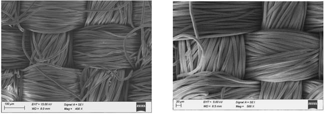 polyester fabric The polyester fabric (desized, sodium hydroxide treated, polyvinyl alcohol treated and the subsequent dispersed dyed) was subjected for scanning electron microscope study using 30kV scanning electron microscope, JEOL (Japan) Model JSM-6360 Ramachandran, T, & Kesavaraja, N 2004, Roberts, RC 1969. 2.2.8.