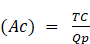 Average Cost (Ac) The average cost which can also be referred to as mean is calculated as the total cost (Tc) divided by the total output (Qp). Thus, average cost is: Average cost Or Or