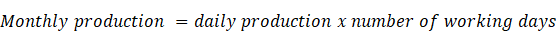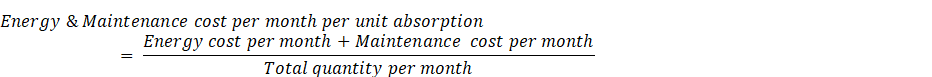 Best on production line installed capacity 12,960 pcs/day. Assuming the line will run at 75% efficiency and 22 working days/month. Therefore, daily average production will be = 12960x0.75 = 9720pcs/day Monthly production = 9720 x 22 = 213840pcs Energy & Maintenance cost per unit absorption per