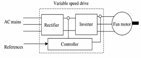 VSDs are already used in applications such as pumping and building ventilation. Many researchers report that VSDs are the most effective way to save energy when running a particular load (Kaya and Kilic (2004), Khalid (2014), Mecrow and Jack (2008). VSD systems decrease energy consumption, increase energy effectiveness, improve the power factor and process accuracy, and decrease the mechanical pressure on the fan and motor. In fan applications, energy consumption follows the laws of affinity. These regulations are used when changing variables to estimate a fan’s working efficiency. Equations 1–3 represent the widely used fan laws, showing the connection between the fundamental parameters of fans (Simpson and Marchi (2013)).