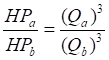 Where Q is the flow, N is the speed, P is the pressure, and HP is the power. The laws of affinity (also called cubic laws) state that the output or flow of a fan is directly proportional to its speed. The terms Q (flow) and N (speed) in the above expressions, under Equation 1, are interchangeable. So, Q can be substituted in place of N in Equation 3.