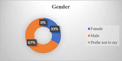 above pie chart shows that out of 100% respondents, 67% were male and 33% were