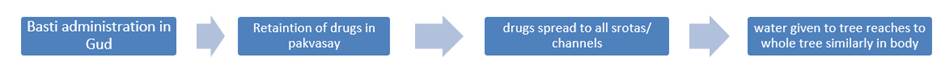 The specialty of Ayurveda is that it explains the compounded things/topic with simple clarification by using analogy seen in day-to-day life. Such way of explaining the things were used, as there was lack of non involment of objective criteria for explanation. This easy explanation makes one to understand the pathophysilogy, prognosis and treatment very comfortably. Which also includes the concept of Basti.