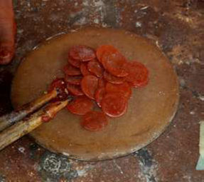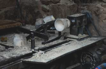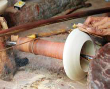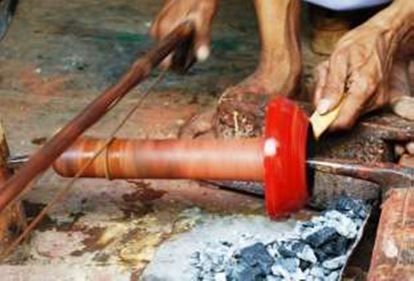 state. The lac stick is squeezed against the woodenware to be lacquered. As the