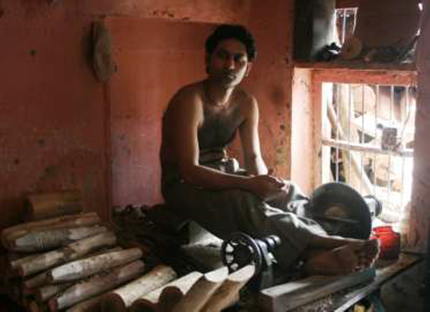 turned into a workshop. The arrangement of log wood for lac-turnery starts with