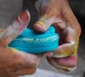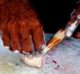 Figure 11: Picture by Mitali Pandey Minare 5. PRODUCTION OF LACQUER1) The process of preparation of enamel from lac starts with warming and mellowing. 2) Lac is adhered on to the finishes of two wooden sticks which are warmed until the lac gets plastic and pliant. 3) The warming cycle is sometimes rehashed to look after versatility. A particular measure of lithophene is then added to the mellowed lac and is constantly beaten until a white color shows up. 4) A little part of powdered color is blended in with a little bit of water and this is added to the warm white lac. 5) The blend is then beaten until the right shade develops. The lac at that point starts to expect the consistency of elastic. 6) The lac is warmed, and is taken out from the splinters before it sets. A long flimsy stick of colored lacquer of 1 cm thick and 3 cm wide is molded and afterward cut into 15-20 cm lengths. 7) Around Four to five sticks of one tone can be set up at an equivalent time. These sticks have a time span of usability of just a single month before they become hard and unsuited for lacquering. [14]