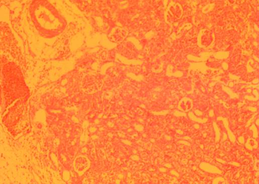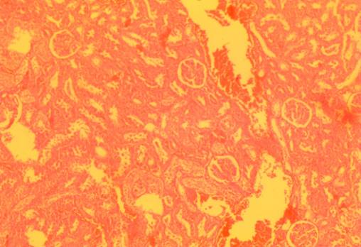 of cortical tubules and glomeruli with hemorrhage Figure 1. The kidney of