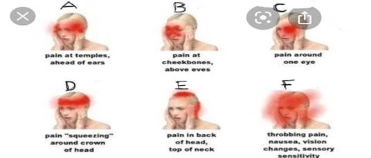 Headache is Confined to, A, B, C, D, E, F are the Options with the Age Group and