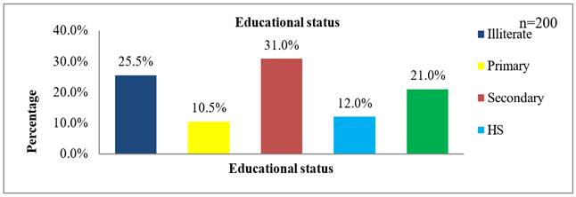 Data depicted in Figure 3 shows that 31% of peri-menopausal women completed secondary education, and 25.5% women are illiterate.