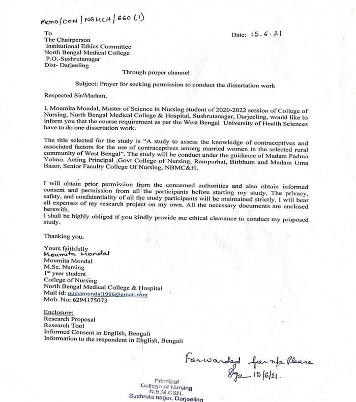 Letter for seeking permission from the Chairperson, Institutional Ethics Committee to conduct the research study