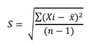 The formulas used to obtain the mean, minimum value, maximum value, and standard deviation are: