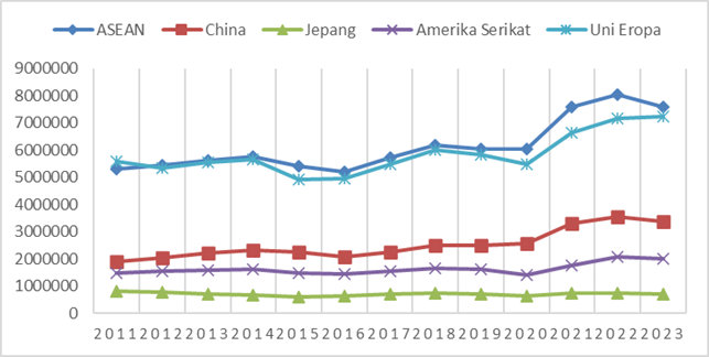 Figure 2 Main Countries or Regions of Destination for Indonesian Exports in the Period 2011-2023 (in million USD) Source : processed