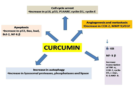 One of the main mechanisms by which curcumin modify tumor microenvironment is by modulating functions of various cytokines. Thus, while the gradual structuring of a tumor associated immune-suppressed microenvironment is being achieved, it has been shown that a variety of cytokines play an important role in regulation of composition and proportion of immune cellular component responsible for promotion of growth of any cancer along with cellular components responsible for suppression of any cancer (Pramanik, Makena et al. 2018).