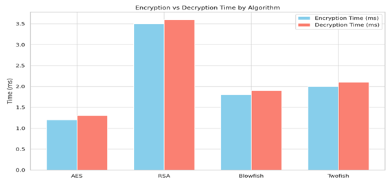 These results demonstrate that AES-256 encryption is highly efficient even for large data volumes, with minimal time overhead.