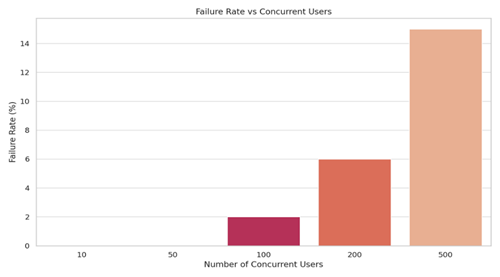 The application maintained acceptable performance up to 1000 users, with minimal latency increase and negligible failure rate.