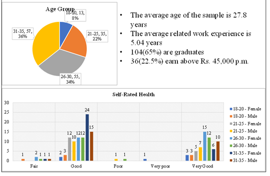 1) Demographic Profile of the Sample: The study sample comprised 160 screen users aged between 18 - 35 years, segmented into four distinct age groups. The largest proportion of participants belonged to the 31–35 years category (36%), closely followed by those aged 26–30 years (34%). Participants aged 21–25 years accounted for 22%, while the youngest group (18–20 years) formed the smallest segment at 8%. This distribution reflects a relatively balanced representation across early and mid-adulthood, ensuring a comprehensive view of digital fatigue among the working-age and student population.